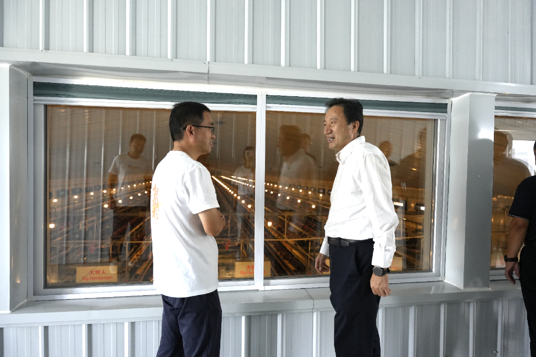 調(diào)研組隨后實地走訪蛋雞養(yǎng)殖舍,朱總介紹道,目前蛋雞存欄量穩(wěn)定在60萬羽,年產(chǎn)蛋量過萬噸,智能化管理大大提高蛋雞成活率,遠超傳統(tǒng)養(yǎng)殖水平。隨后,白書記詢問企業(yè)二期工程進展,并對此表示期待,鼓勵企業(yè)加快建設進度,早日形成更大產(chǎn)能、發(fā)揮更強帶動作用。他強調(diào),畜牧業(yè)是保障民生供給、推動鄉(xiāng)村產(chǎn)業(yè)振興的重要支柱,易豐農(nóng)業(yè)要持續(xù)發(fā)揮示范引領作用,進一步強化科技支撐,優(yōu)化生產(chǎn)管理,嚴格把控產(chǎn)品質(zhì)量安全,不斷提升產(chǎn)業(yè)競爭力;相關(guān)部門要主動對接企業(yè)需求,做好政策扶持與服務保障,共同推動全區(qū)畜牧業(yè)高質(zhì)量發(fā)展。