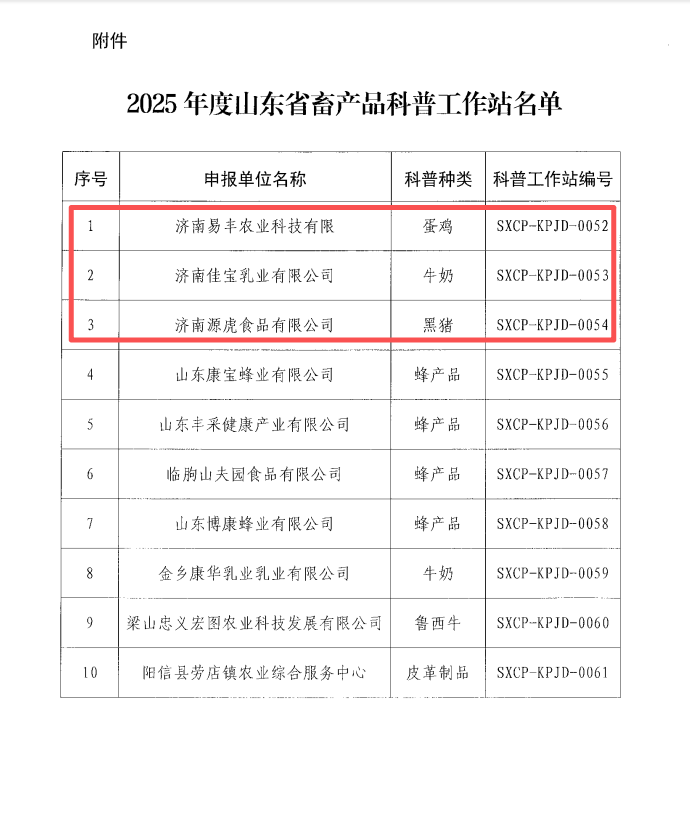 濟(jì)南易豐農(nóng)業(yè)科技有限公司成功獲評“2025年度山東省畜產(chǎn)品科普工作站”,科普種類為蛋雞領(lǐng)域,成為濟(jì)南地區(qū)聚焦蛋雞產(chǎn)業(yè)科普、助力畜產(chǎn)品質(zhì)量安全知識傳播的重要載體;